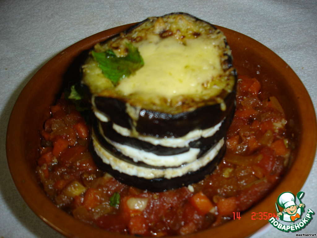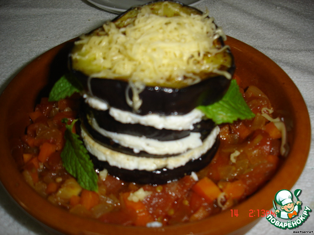 | Признаюсь честно:блюдо содрала у итальянского повара Марко Фоликалди, думаю, он на меня не обидится. Башенка из баклажанов с мозареллой и пармезано мне так понравилась что я сразу ее захотела сделать, не смотря на то, что сыра мозарелла у меня не было. Я сделала с сыром фета, но этот сыр не так хорошо плавится. Тем не менее, блюдо получилось вкусное, нарядное, мне понравилось. |