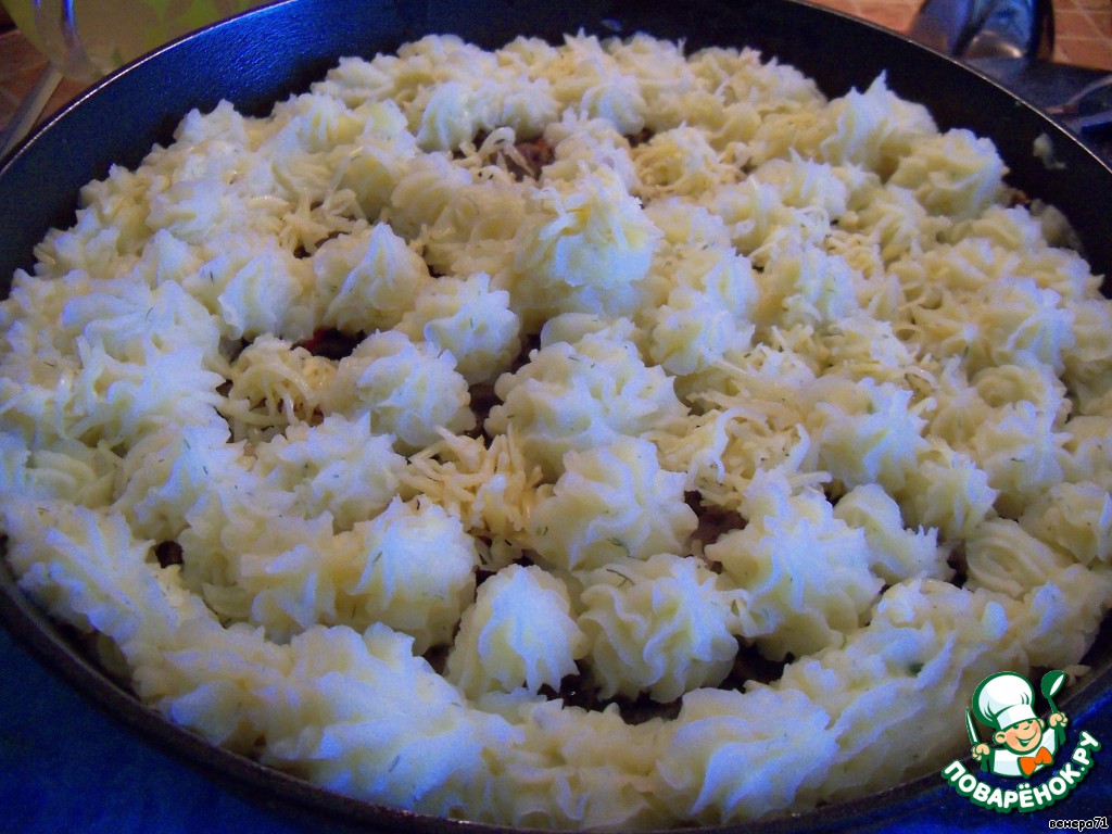 Далее вторую половину пюре (можно разровнять и посыпать сыром)