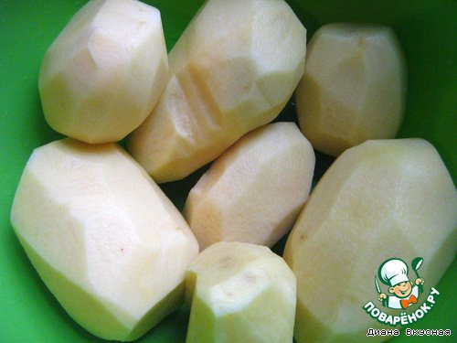 Нарезать на крупные кусочки и отварить с лавровым листом