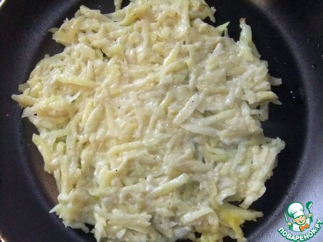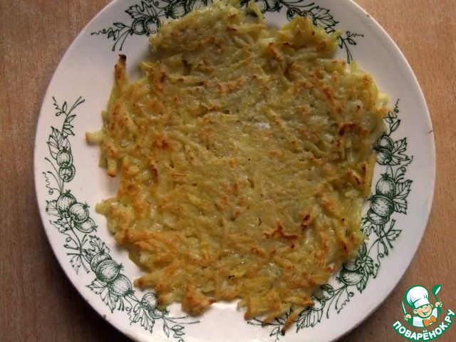 Готовый картофельный блин выложить на тарелку,