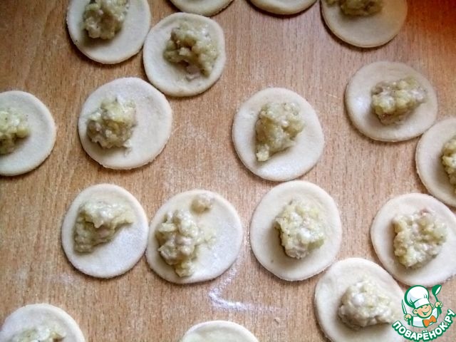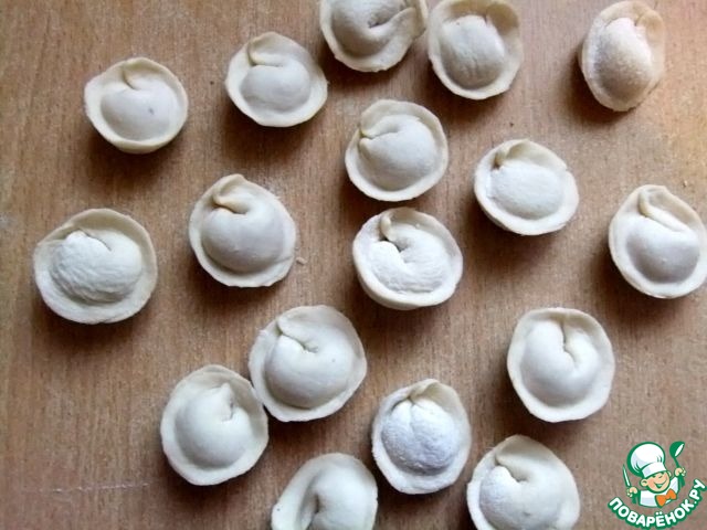 Слепить пельмени, хорошо скрепляя края.