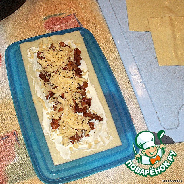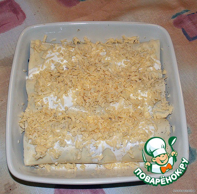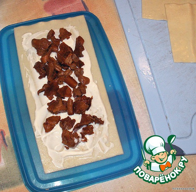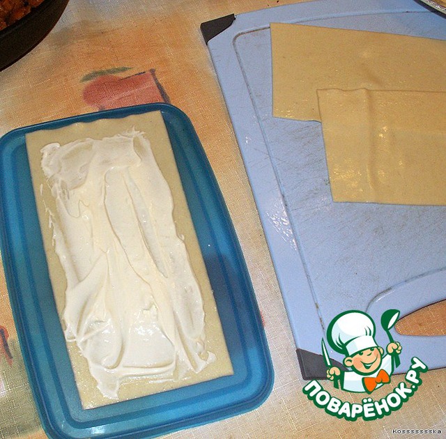 Кладем отваренную пластинку на нелипучую поверхность, промазываем сметаной.