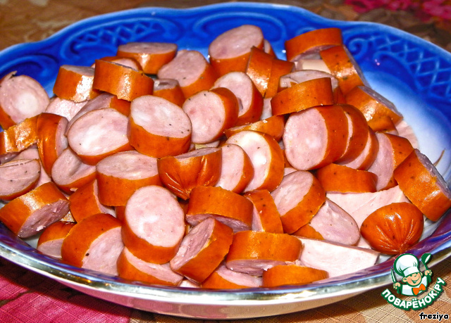 Колбаски нарезаем кружками.