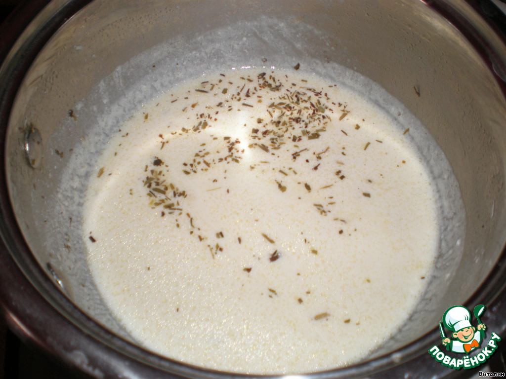 готовлю соус: сливки, пармезан натертый, чеснок измельченный, соль и специи вскипятить, соус готов, варим равиоли 5 минут в подсоленной воде,