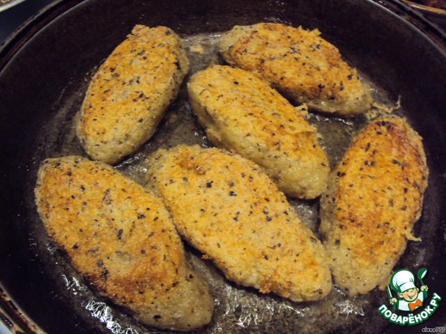 | Очень вкусные картофельные деруны с начинкой из сыра, ветчины, в пикантной панировке. |