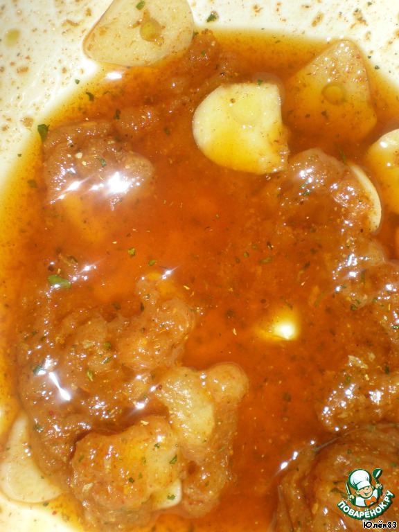Смешать мёд, нарезанный чеснок, масло, соль, паприку и ароматические травы.