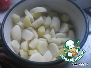 Картофель режем (у меня получилось на четвертинки, но можно и любой другой формы) и ставим вариться:)