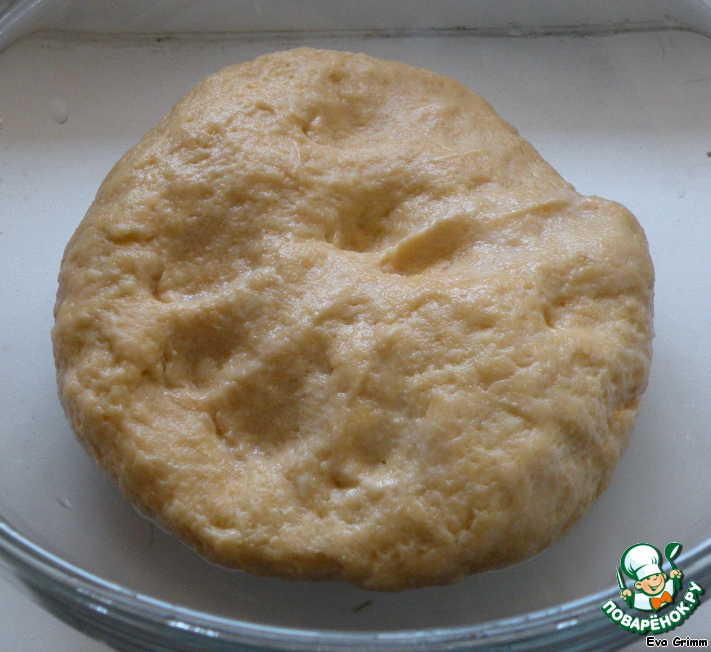 Укрыть пищевой пленкой и поставить в холодильник на время, пока будем готовить начинку