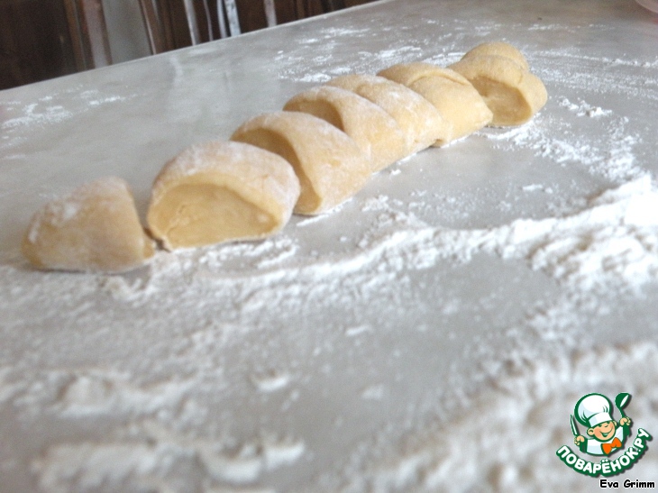 Каждый кусочек раскатаем и начиним начинкой, защипнем края