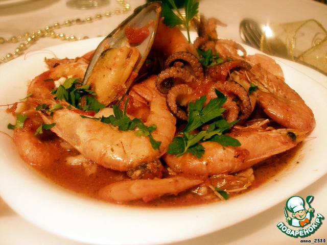 Соте из морепродуктов и рыбы