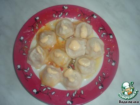 | Нашла рецепт этих пельмешек в книжечке "Вкусные страницы". Так как у меня дети не очень хотят кушать рыбу, поэтому этот рецепт меня заинтересовал. Муж подумал, что пельмени из куриного мяса. Детки так же скушали на ура. |