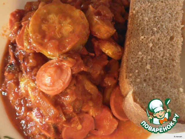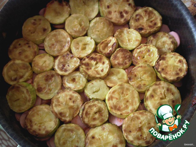 | Рецептом поделилась бывшая коллега по работе. Вкусненькие кабачки с ароматом копченостей. |