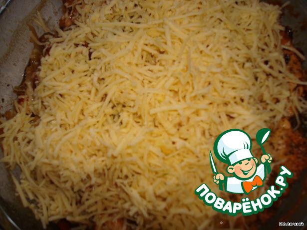 Посыпала тертым сыром и еще на пару минуток в микроволновку.