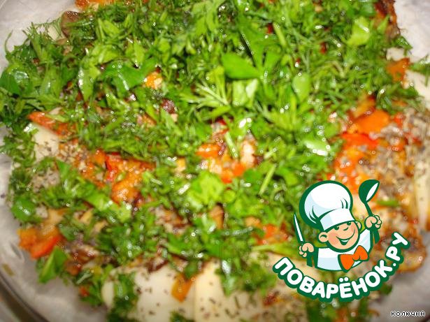 Посыпаем все зеленью, у меня был укроп и петрушка.