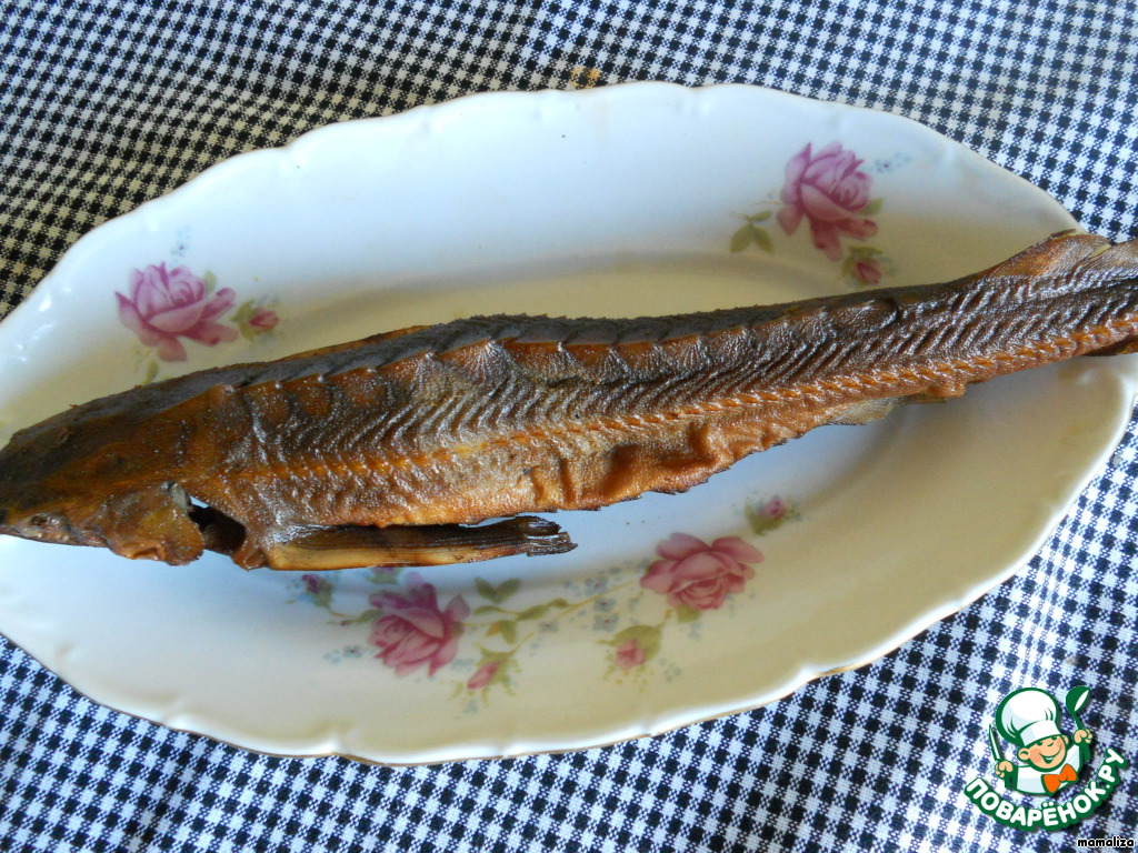 Путешествуя, мы приобрели на берегу Камы вот такую стерлядь горячего копчения. К этой стерляди я и запекла картофель.
