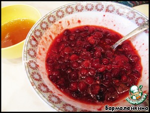 Смешайте клюкву с 2 ст.л. меда. И хорошо разотрите.