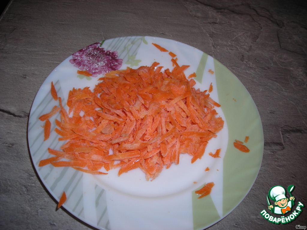 Нарезаем морковь (можно на терке). В данном случае свежемороженая.