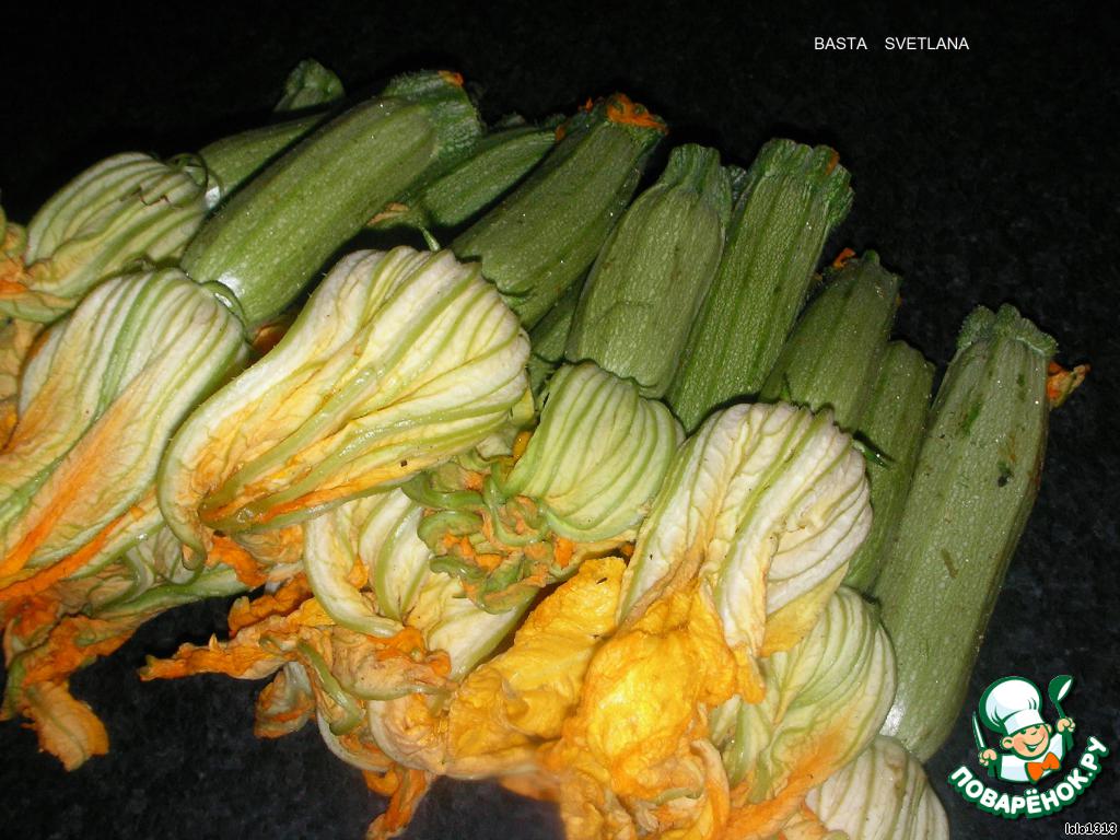 Когда хозяйки решат приготовить это блюдо, то выходят собирать кабачковые цветочки ранним утром, чтобы они были раскрыты.