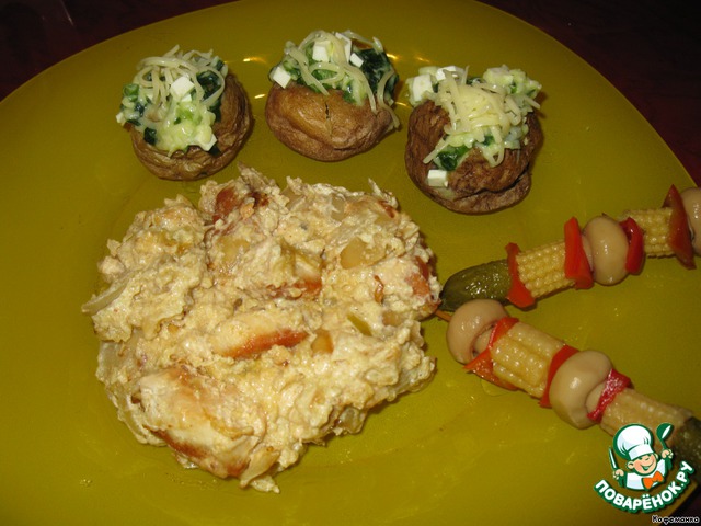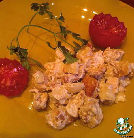 Там на фото, рядом с картошечкой, так полюбившееся нашей семье куриное филе с яблоками ( этот рецепт я тоже как-то выставляла ). Правда, сегодня что-то яблоки получились не кусочками, а пюрешкой. :-D Видимо, сорт яблок другой... ;-) Но на вкус это обстоятельство совсем не повлияло!