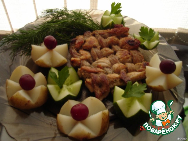 в шахматном порядке сплести мяско по типу (корзинка), как на фото