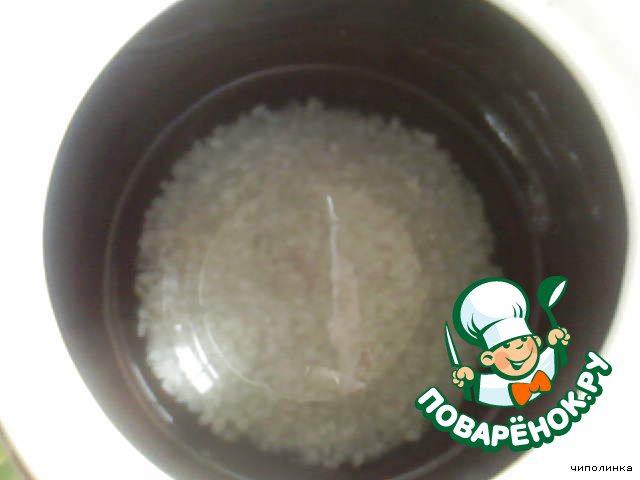 Залить водой так, чтобы уровень воды был на 10-15 мм выше риса.