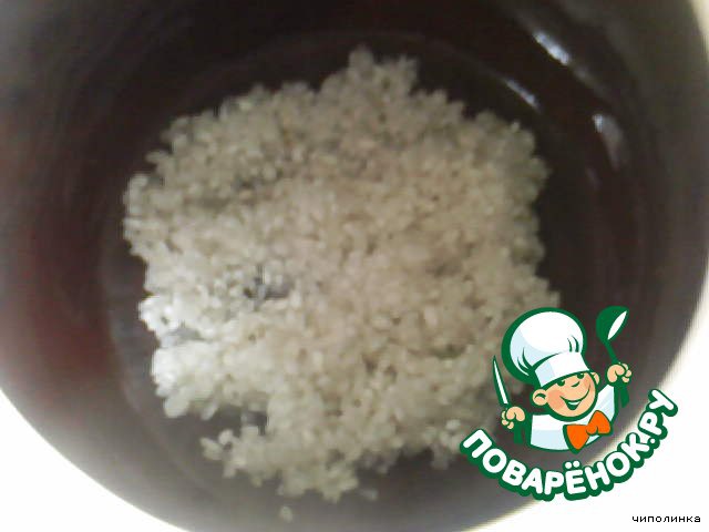 Поставить в холодную духовку, подогревать духовку на сильном огне до температуры 200-220 градусов и тушить до готовности риса (в среднем после подогрева духовки минут 25-30).
