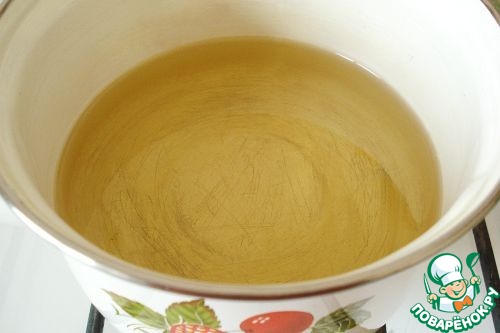 Растительное масло нальём в любую не очень широкую ёмкость (кастрюлю, сотейник) и разогреем его до 180С.