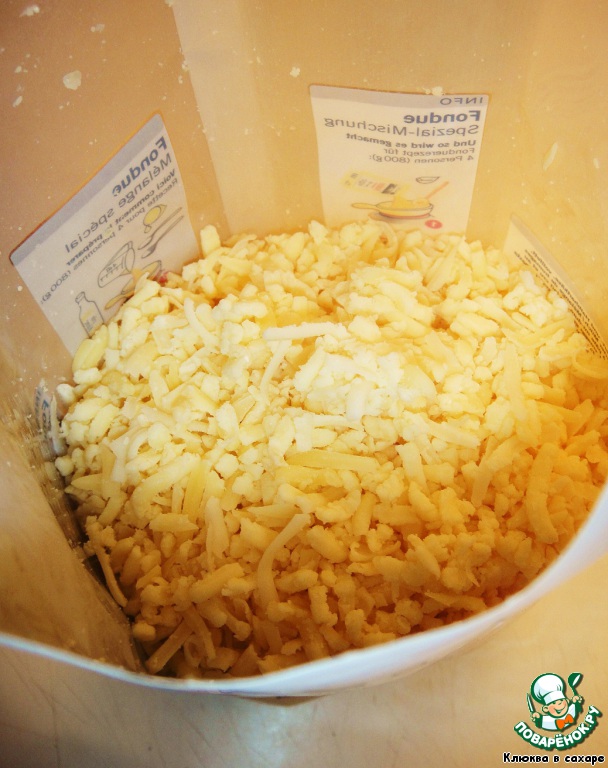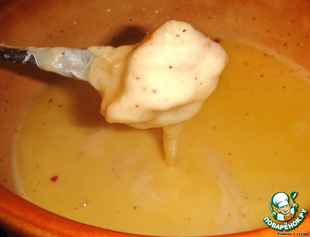 1. Если фондю получилось слишком жидким, следует увеличить огонь горелки и добавить в фондю немного кукурузной муки, размешанной со столовой ложкой вина, интенсивно размешивая. Либо же просто добавить ещe горстку тeртого сыра.