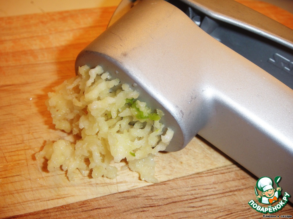 После чего сам чеснок измельчаем (позже мы добавим его в фондю).