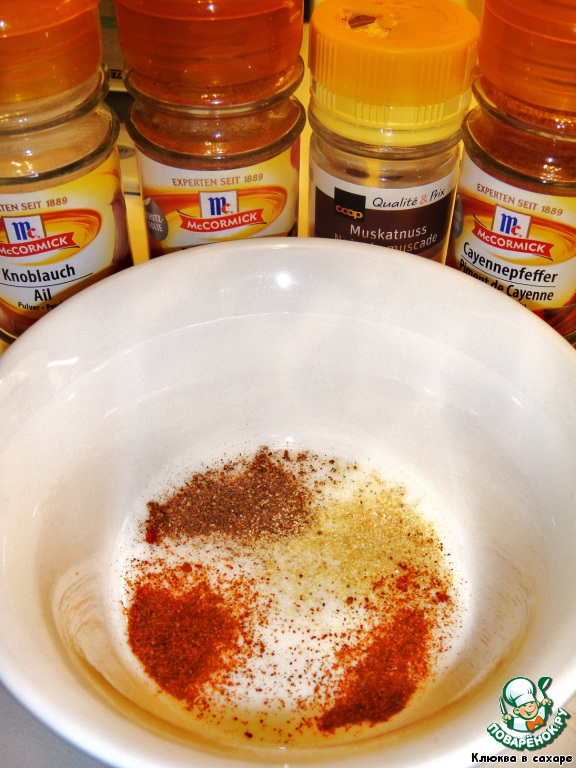 А тем временем приготовим смесь из приправ, которые отлично подчеркнут вкус этого сырного блюда. Для этого смешиваем в равных пропорциях кайенский и красный перцы, сушёный чеснок и мускатный орех.