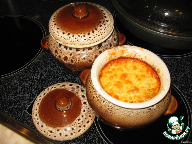 Готовим примерно 40-45 минут при температуре 200 градусов, потом снимаем крышечки и ставим еще минут на 5-10 для образования красивой сырной корочки.
