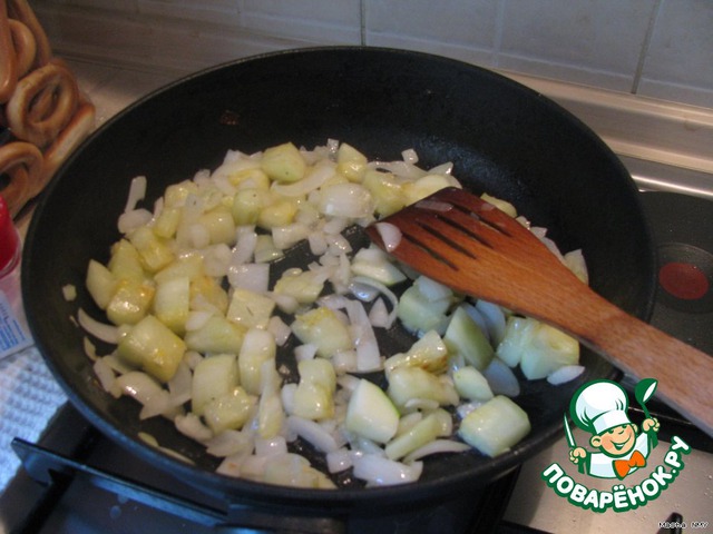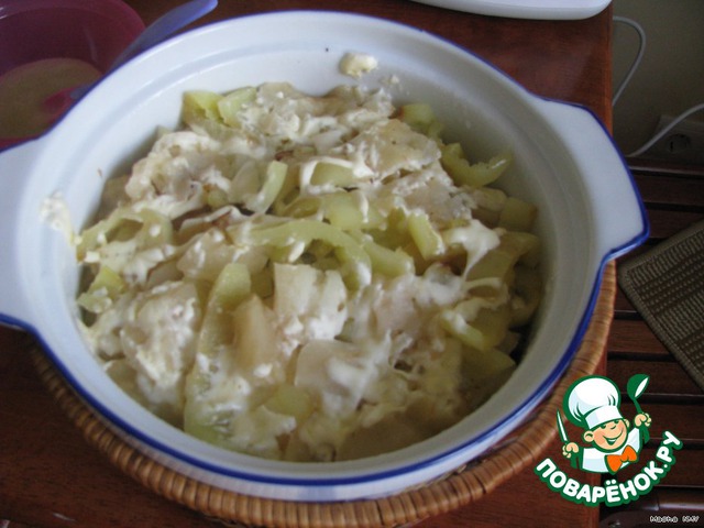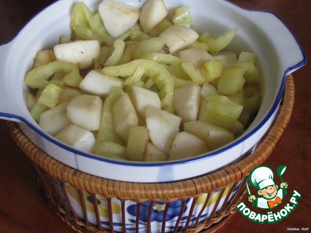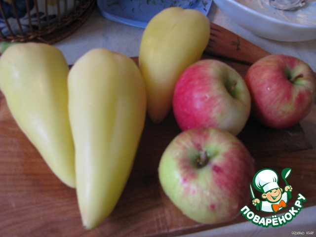 Четвертым слоем будет перец и яблочки, обжаренные слегка.
