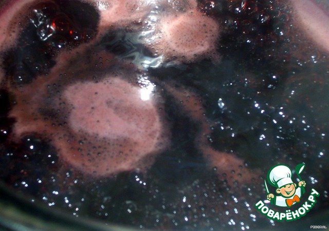# Один стакан вина смешать в сотейнике с медом, поставить на небольшой огонь и уваривать, пока объем жидкости не уменьшится в 2 раза, примерно 10 мин.