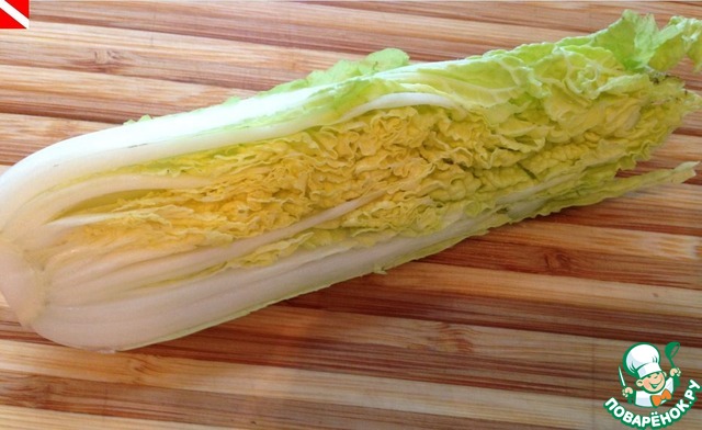 Вот примерно такое количество пекинской капусты я использовала. Есть еще вариант слегка ее отварить (бланшировать), но мне больше нравится слегка обжарить (1-2 минуты)