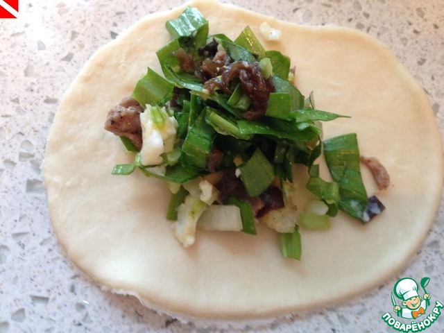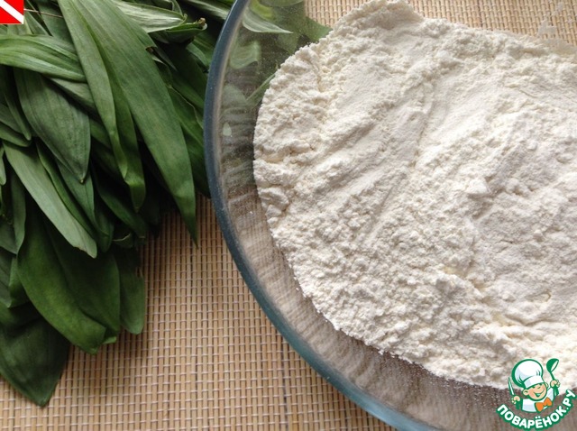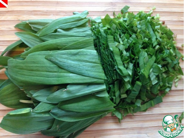 Тем временем, приступаем к начинке. Черемшу промываем, сушим и нарезаем.