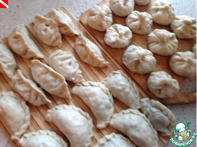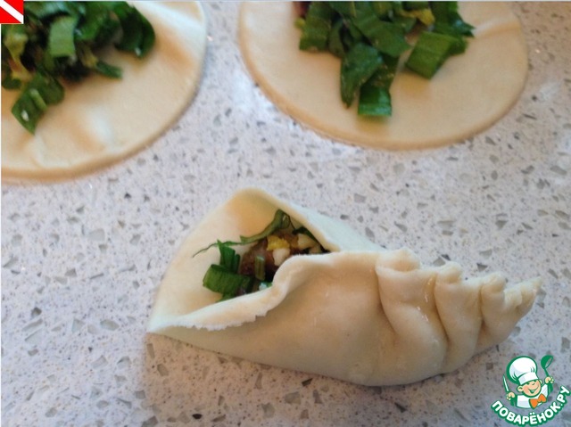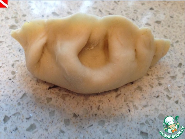 Так как основная составляющая соуса соевый соус, достаточно соленый - мы не солили ни начинку, ни воду для варки.