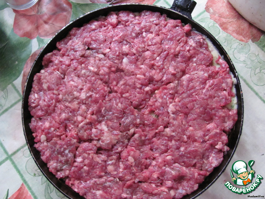 На смазанную (маслом) форму выкладываем слой приготовленного пюре (половину)