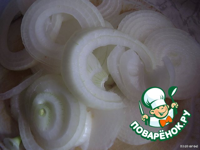 Лук нарезать кольцами.