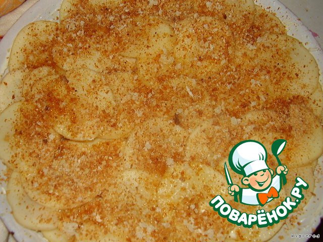 теперь снова картофель, сбрызнуть растопленным сливочным маслом