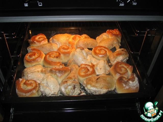 Заглядываем через 15 мин. Булки готовы, а курица пока нет. Вынимаем булочки и угощаем первой партией особо голодных )))