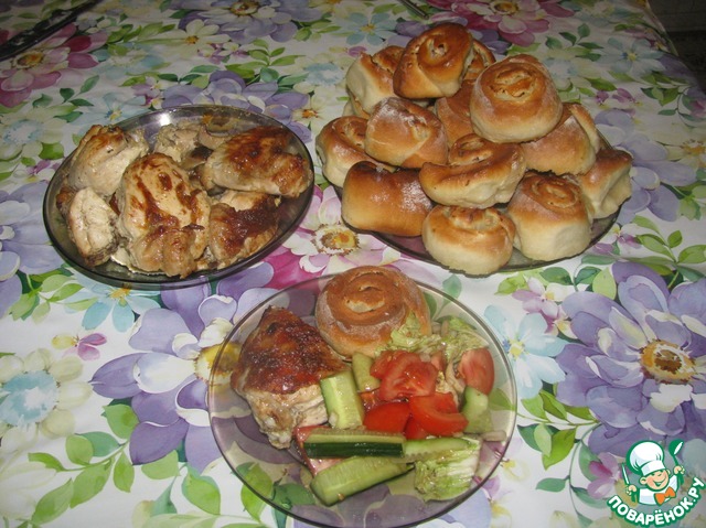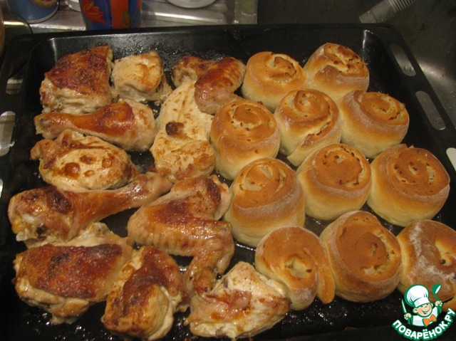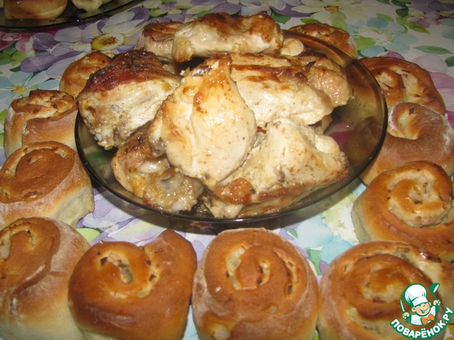 Вот что получилось в итоге. В реальности булочек в 2 раза больше))) По большому секрету- ради них все и затевалось! курица здесь так, группа поддержки )))