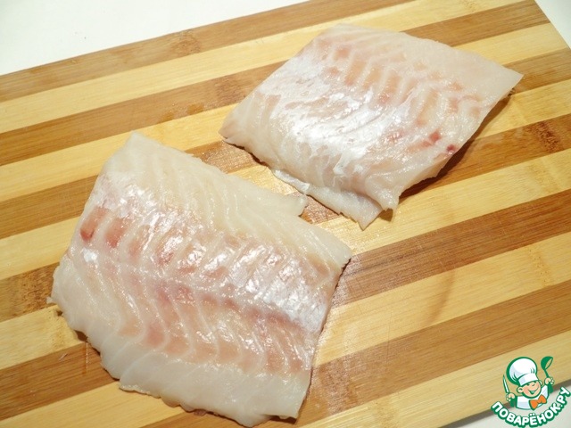 Филе морского окуня делю на порционные кусочки, мою.