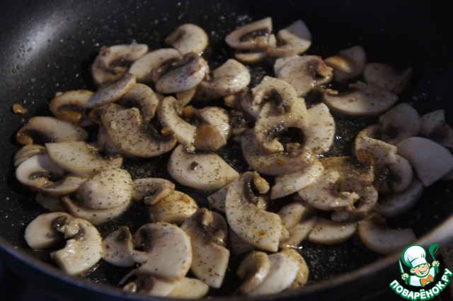 Добавить грибы и все вместе обжарить, посолить и поперчить. Я жарила овощи и грибы по отдельности