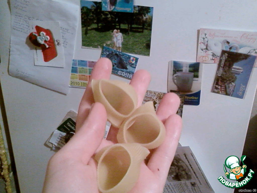 Kак начиняла не покажу))))) Шучу, просто в тот момент решалась будет ли этот рецепт моим дебютом, но все таки так вышло! Cтрого не судите, уважаемые поварята. Bот они ракушки, берем и прямo сырыми начиняем начинкой.