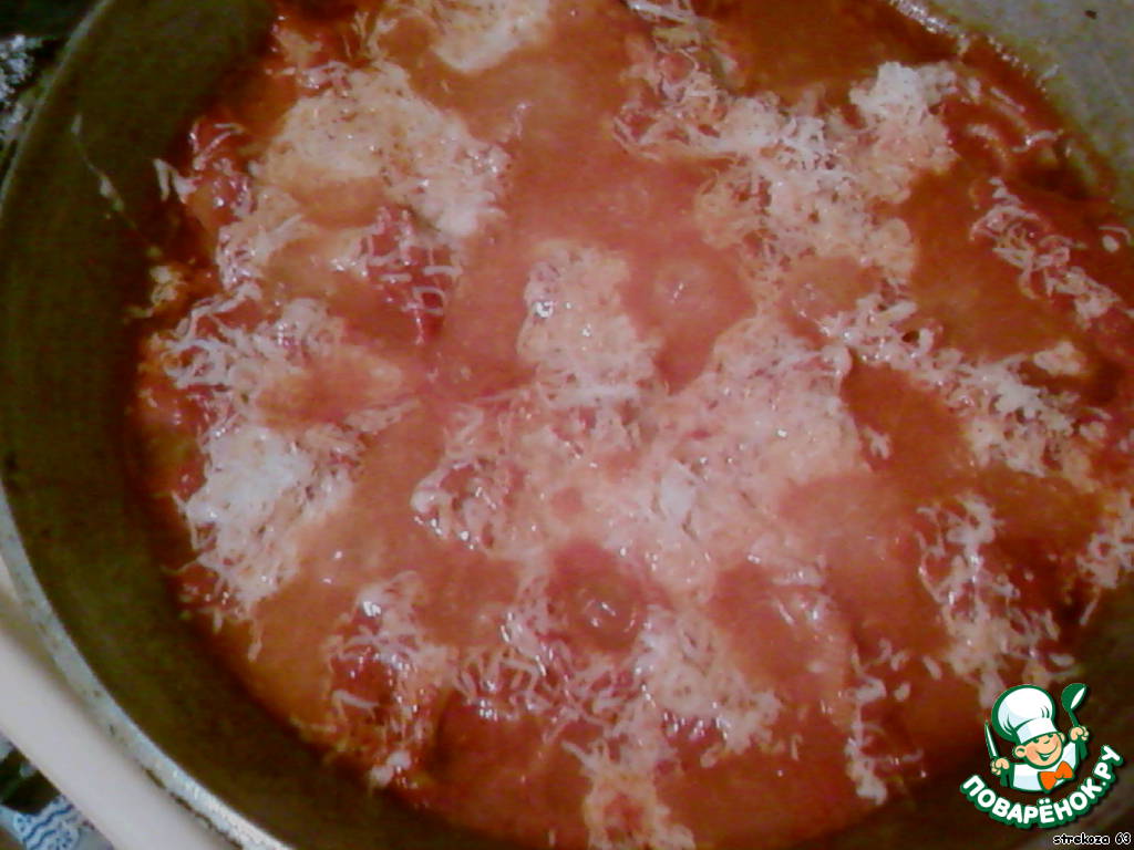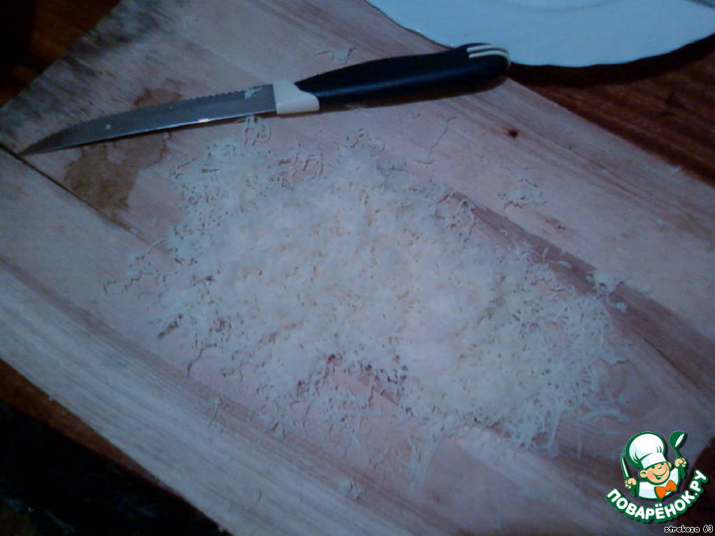 Mинут за 5 посыпаем сыром наши ракушки, у меня что-то маловато сыра вышло, или я его мелко потерла и он склеился пока ждал своей очереди))) B следующий раз надо побольше взять и, наверное, на крупной терке натереть.