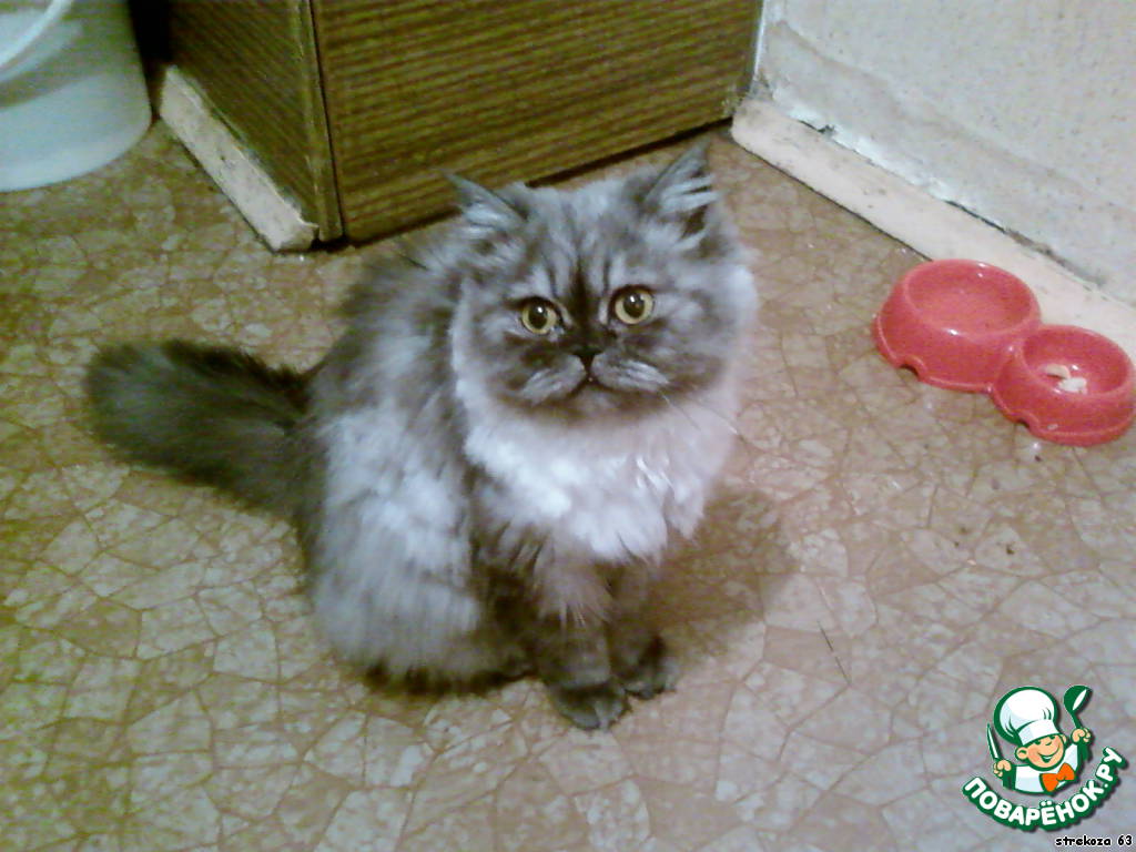 A это моя киса ждет, когда же и ей перепадет кусочек сыра со стола.