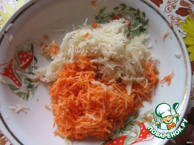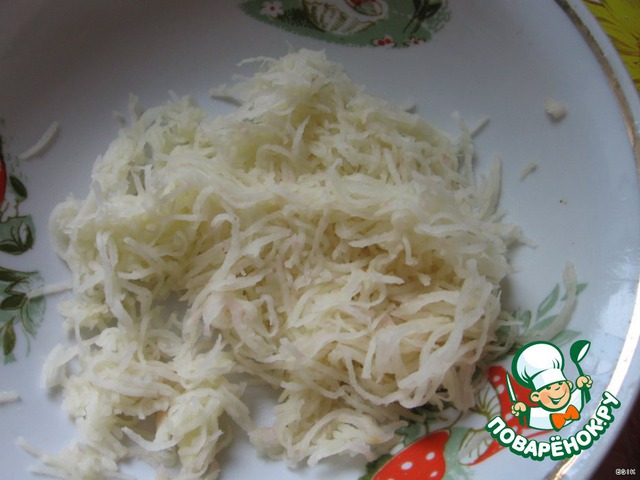 Трем на терке картофель (сырой) и отжимаем из него лишнюю воду.