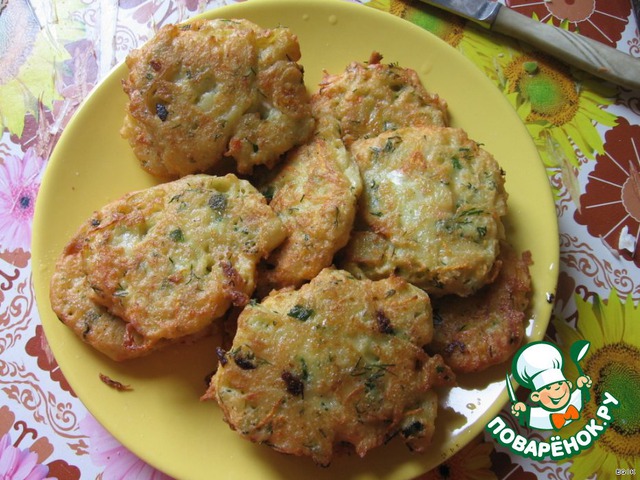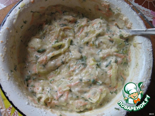 Смешиваем картофель, морковь, яйцо, кефир, специи, зелень.