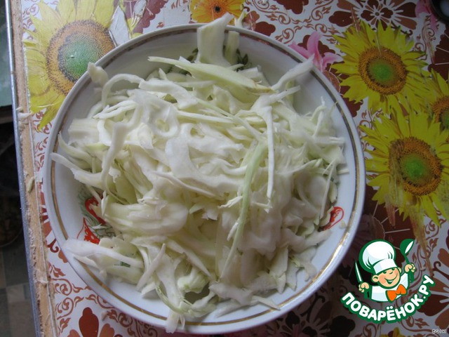 Капусту откидываем на дуршлаг и даем ей стечь и остыть.