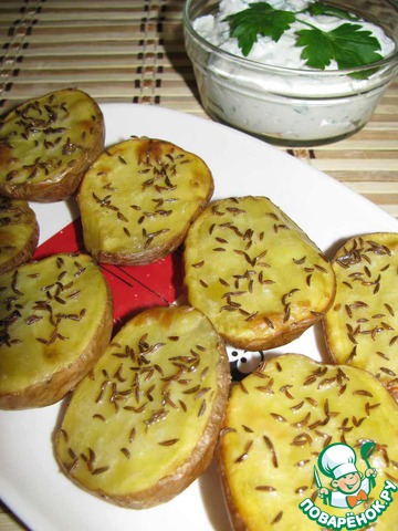 | Печеный картофель с тмином, я думаю, многие пробовали, а в сочетании с пряным творогом? Очень простое блюдо, с минимальным набором ингредиентов, но в то же время вкусное и сытное. |